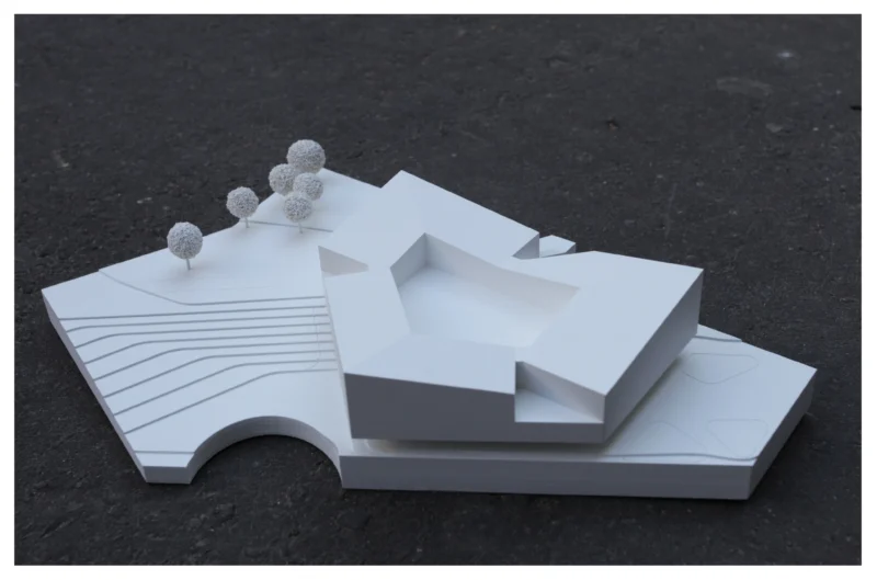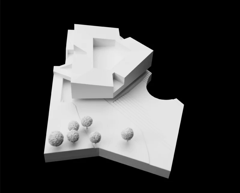 Skulptural eingebettet in die grünen Ausläufer des Klieversberg-Parks führt das Bildungshaus Wolfsburg die Tradition solitärer Parkbauten fort. Seine blütenhafte Auffaltung zu städtebaulichen Hochpunkten verleiht ihm visuelle Prägnanz am Schnittpunkt zwischen Stadt und Landschaftsraum. Die Leitidee des Schulterschlusses vereint die Vielfalt der Institutionen zu einem Ring – das beflügelt das Überschreiten von Grenzen und formuliert eine gemeinsame Mitte.