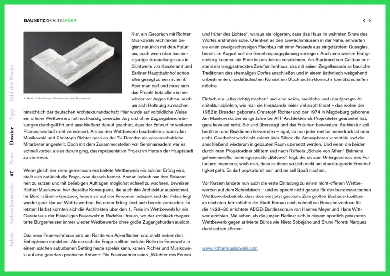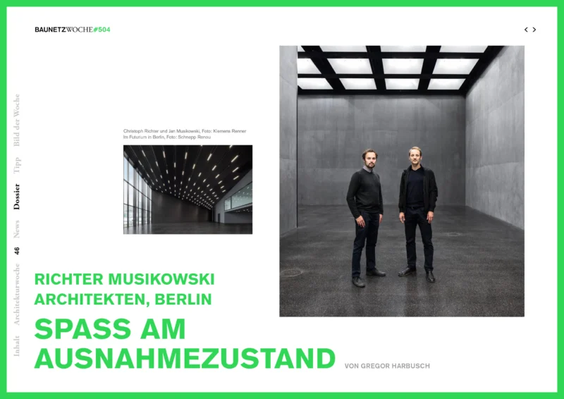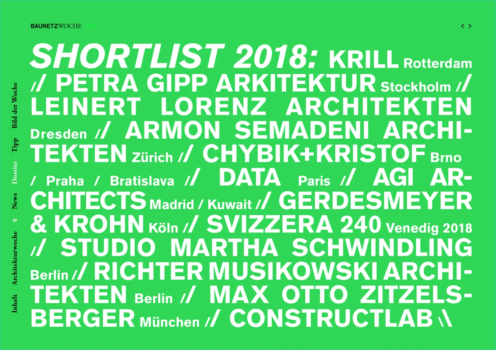 Anfang 2018 besuchte uns Gregor Harbusch vom Baunetz im Büro. Entstanden ist dieser kleine Bericht im Rahmen der Baunetz Shortlist in der Baunetzwoche #504.