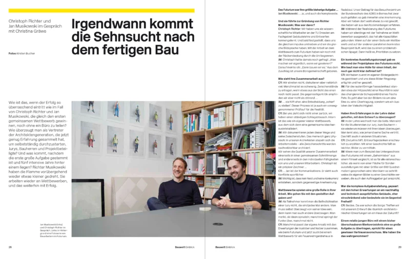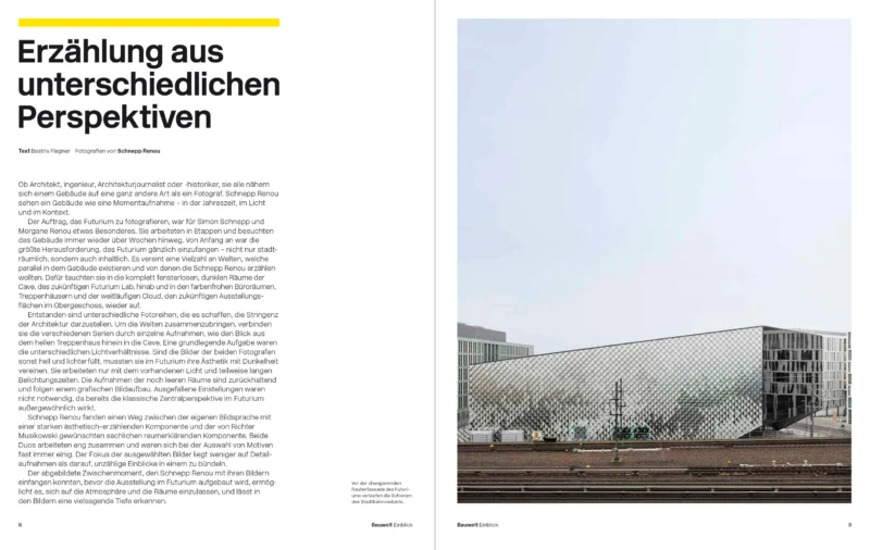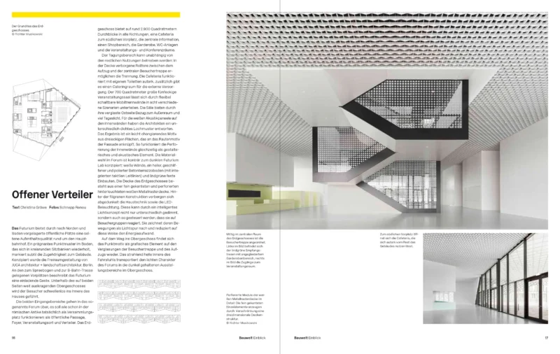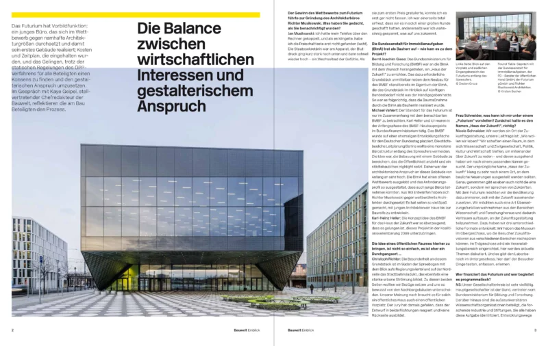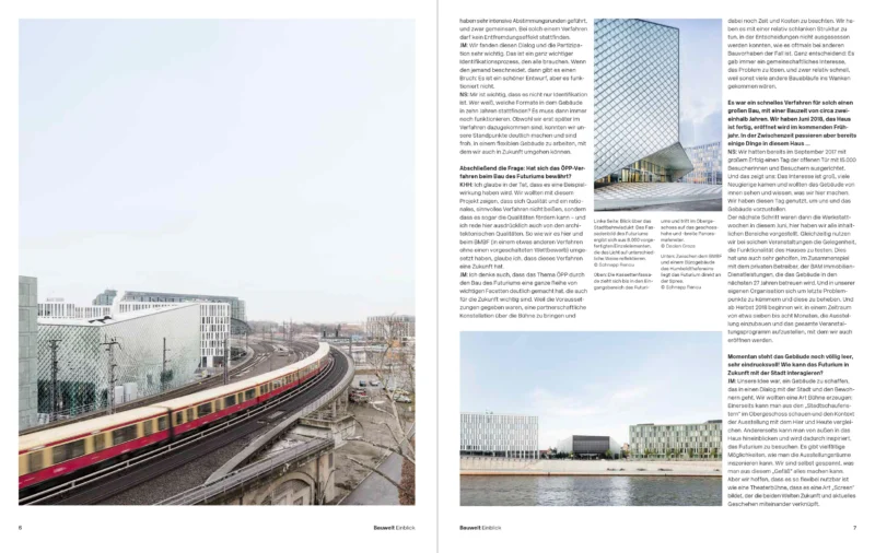 Die Redaktion der Bauwelt hat mit der Bauherrin, der Nutzerin, dem Projektmanagement und uns ein eigenständiges Heft über das Futurium konzipiert und im Herbst 2018 veröffentlicht.