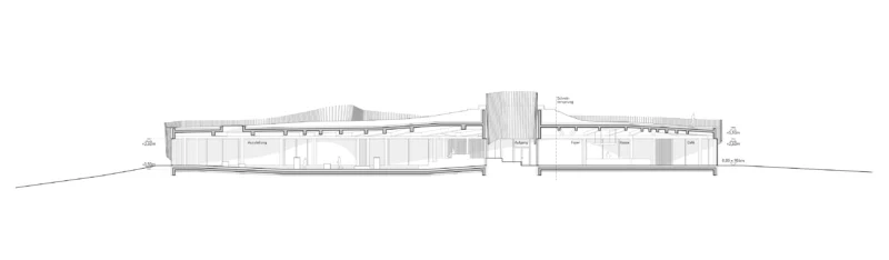 Wie ein halb ausgegrabenes Fossil ist das Besucherzentrum als Teil des Berges konzipiert. Vor- und Rücksprünge bilden windgeschützte Bereiche für die Besucher, das Bauvolumen ist topografisch in die Natur eingearbeitet. Im Inneren ermöglicht das Gebäude als Ausstellungsgefäß mit unterschiedlichen Raum- und Fußbodenhöhen einen Einblick in die Bergwelt mit den Schwerpunkten Geologie und Geschichte. Gleichzeitig öffnet es sich zum Hang nach Osten und inszeniert den Blick auf den Thüringer Wald.